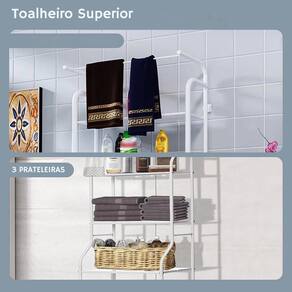 - Toalheiro Superior Integrado: Aproveite o toalheiro na parte superior do rack para secar roupas leves, toalhas ou peças delicadas, maximizando o uso do espaço de forma prática.