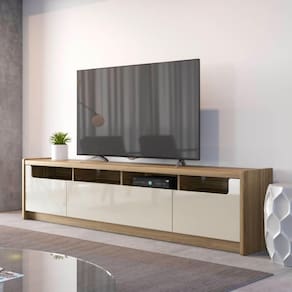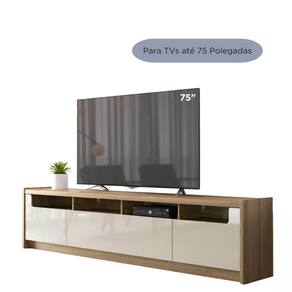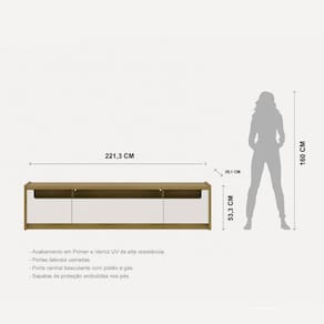 O Rack Oslo é a escolha perfeita para quem busca design elegante e funcionalidade em um só produto. Com 220 cm de largura, ele acomoda TVs de até 75" e oferece amplo espaço de armazenamento com portas laterais e nichos organizadores para aparelhos eletrônicos, com furação para passagem de fios. Feito em MDP com acabamento em Verniz UV, conta com uma porta central basculante equipada com pistão a gás, garantindo suavidade no manuseio.