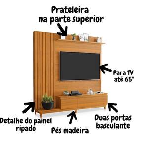 Rack Painel de TV Jakarta para TV até 65 - Praticidade e Sofisticação para sua Sala! Transforme sua sala de estar em um ambiente elegante e funcional com o Rack Painel de TV Jakarta, perfeito para TVs de até 65 polegadas. Com um design moderno e sofisticado, ele traz um toque de estilo ao seu espaço, combinando praticidade e beleza em um único móvel. Feito com acabamento em freijó, o detalhe ripado agrega um charme especial e único, além de conferir um ar contemporâneo à decoração. Destaques do Rack Painel de TV Jakarta: Compatibilidade: Ideal para TVs de até 65, proporcionando uma experiência de cinema em casa. Design Funcional: Conta com uma prateleira superior para organizar itens de decoração, eletrônicos ou livros. Armazenamento Prático: Duas portas inferiores basculantes para armazenar e esconder objetos, mantendo sua sala organizada e elegante. Acabamento Premium: Cor freijó que traz calor e sofisticação ao ambiente, fácil de combinar com outros móveis e estilos de decoração. Durabilidade e Resistência: Fabricado com materiais de alta qualidade, garantindo durabilidade e resistência para o uso diário. Adquira agora o Rack Painel de TV Jakarta e eleve o nível da sua decoração! Ideal para quem busca um móvel funcional, com design moderno e elegante. Crie um espaço aconchegante e organizado, perfeito para momentos de lazer e entretenimento com sua família e amigos. IMAGENS MERAMENTE ILUSTRATIVAS.