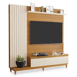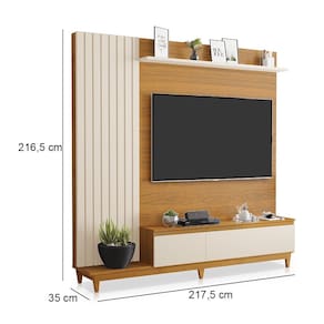 Características: Estrutura em MDF Detalhe Ripado Prateleiras com Amplo Espaço Possui Pés Portas Baculantes Sendo uma com Dobradiça e uma com Pistão Ideal para TV até 65 Polegadas.