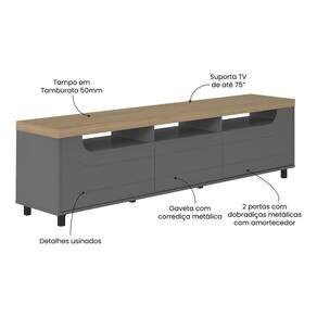 Rack Para Até 75 Polegadas 200cm 2 Portas 1 Gaveta Multimóveis Cr45325 Carvalho/grafite Carvalho/grafite Eleve seu entretenimento com elegância e estilo com o Rack para até 75 Polegadas 200cm 2 Portas 1 Gaveta Multimóveis CR45325. É mais do que um móvel, é a expressão da elegância que transformará seu espaço. Produzido em MDP/MDF com pintura UV, garante durabilidade e resistência. - Até 75 Polegadas de Pura Imersão: Projetado para TVs grandes, oferecendo uma experiência visual envolvente. - Tampo em Tamburato 50 mm: Robustez e sofisticação para suportar e realçar sua . - 3 Nichos Inteligentes: Organize dispositivos eletrônicos e decorações de forma prática e elegante. - Gaveta para Armazenamento Discreto: Guarde controles e itens essenciais com facilidade. - 2 Portas com Amortecedor: Abertura suave e silenciosa, trazendo praticidade ao seu dia a dia. - Detalhes Usinados: Toque artesanal que destaca a beleza e singularidade do móvel.