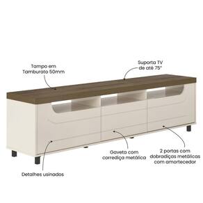 Rack Para Até 75 Polegadas 200cm 2 Portas 1 Gaveta Multimóveis Cr45325 Pinho/off White Pinho/off White