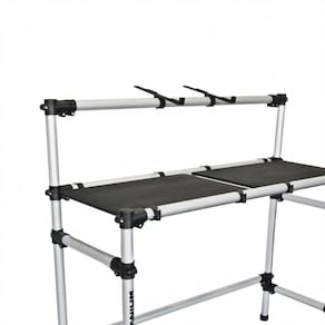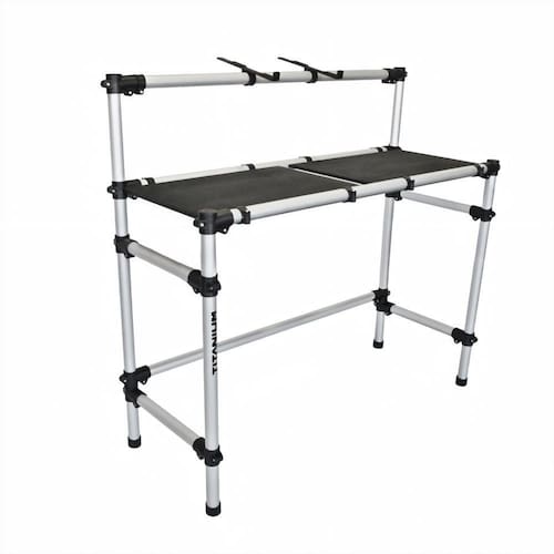 O Rack DJ RDJ-CONTROL da Titanium Racks possui barra em "L" para notebook, bandejas em MDF revestido em EVA para mixers, controladores e CDJs.