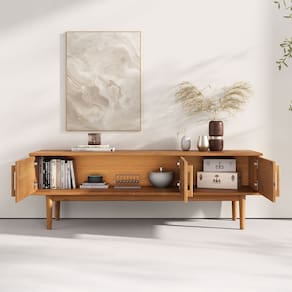 Com 145 cm de largura, o Rack Pequeno Madeira Maciça Minimalista Tecca é a escolha ideal para quem busca um móvel funcional com presença leve. Feito 100% em madeira maciça, combina estrutura firme com design limpo, valorizando ambientes pequenos com estética atemporal e proporção inteligente.