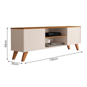 Fabricado em MDP de 12mm, oferece estrutura resistente e acabamento de qualidade. Conta com 2 portas com dobradiças, 1 prateleira para eletrônicos ou objetos decorativos e pés de plástico que garantem estabilidade ao móvel.