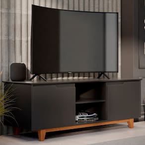 Essa peça une funcionalidade e elegância, tornando-se o item perfeito para a sua sala de estar. Com capacidade para acomodar uma TV de até 55 polegadas sobre a bancada, esse rack oferece espaço de sobra para todos os seus aparelhos eletrônicos, como Blu-ray, videogames, caixas de som e muito mais, os quais podem ser instalados nos nichos centrais. Já a tonalidade sóbria com detalhes em amadeirado dá um toque de sofisticação ao ambiente, combinando facilmente com qualquer estilo de decoração. Seja em uma sala de estar moderna ou em um ambiente mais clássico, o Rack Flow se adapta perfeitamente, tornando-se o ponto focal do cômodo.