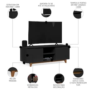 Transforme sua sala em um espaço de entretenimento e estilo com o Rack para Sala Bancada de TV 55 Pol 139cm Flow Preto, da EJ Móveis!