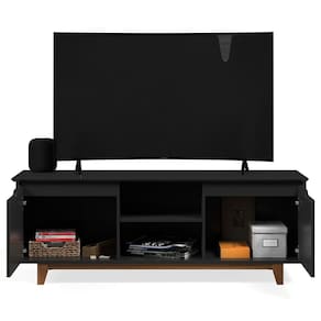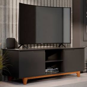 Transforme sua sala em um espaço de entretenimento e estilo com o Rack para Sala Bancada de TV 55 Pol 139cm Flow Preto, da EJ Móveis!