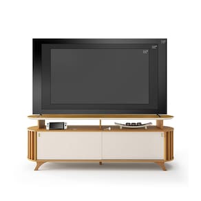 O Rack para Sala Bancada de TV 70 Pol 181,5cm Riley Cinamomo/Off White você transformará sua sala de estar em um espaço luxuoso. O estilo orgânico, que remete a formas mais naturais e suaves, é também à inovação do design, criando um visual moderno. A linha fluida e elegante do móvel, combinada com os pés de madeira maciça, trazendo uma sensação de sofisticação e aconchego ao mesmo tempo. A capacidade de receber TVs de até 70 polegadas garante que você tenha espaço de sobra para um entretenimento de qualidade. As duas portas são super funcionais, permitindo fácil acesso ao amplo compartimento interno, perfeito para guardar itens diversos como controles, DVDs e outros acessórios. Os ripados nas laterais trazem uma textura sofisticada que adiciona um charme único e modernidade ao design, enquanto o tampo chanfrado cria um visual mais elegante e detalhado. Cada pequeno detalhe foi pensado com cuidado para criar um móvel que não só organiza, mas também enriquece a estética do espaço. Garanta já o seu!
