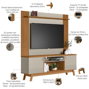 Largura útil para TV no rack: 180 x 38 cm.