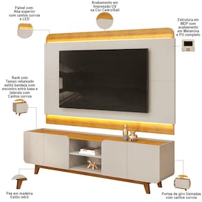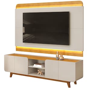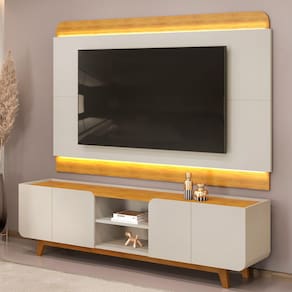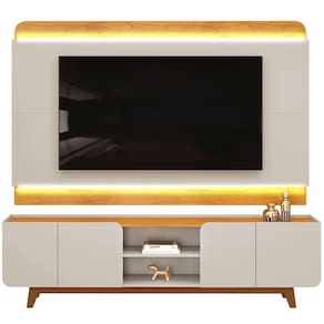 Para que escolher entre rack e painel se você pode ter os dois e deixar a sua sala de estar completa?! Sim, com o Rack Para Sala com Painel Para TV 75 Pol LED Cine D05 Bali Cedro, da Lyam Decor, você terá o combo de funcionalidade e estilo. O rack bancada com o tampo rebaixado cria o efeito de bandeja, enquanto os cantos curvos dão um toque de modernidade. Por sua vez, a funcionalidade fica por conta das quatro portas, já que garantem um amplo espaço interno para armazenar seus objetos e, assim, manter tudo organizado e no lugar. Além disso, os dois nichos e a prateleira entre as portas foram projetados intencionalmente para dispor os demais aparelhos eletrônicos ou até mesmo itens decorativos. Para completar, o painel para TV suporta até 75 polegadas, além de receber destaque com as fitas de LED, que criam um ar acolhedor e convidativo. Um conjunto para sala lindo de se ter, não é mesmo?! Então, aproveite momentos de entretenimento com muito estilo com o Rack e Painel Cine. Garanta já o seu!