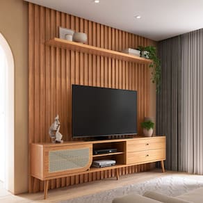 MDFEleve sua sala de estar a um novo patamar com o Rack com Painel Ripado Ada, da Lyam Decor.