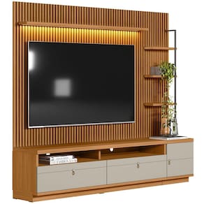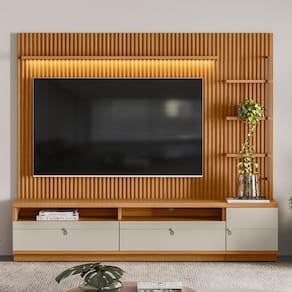 Suporta TV de até 75 polegadas no painel, 70 polegadas na bancada.