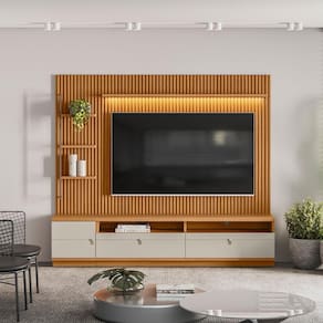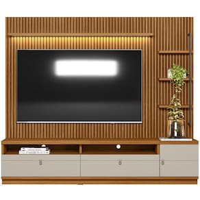 O Rack Para Sala com Painel Ripado Para TV 75 Pol 224cm Orizon L05 Nature Off White, da Lyam Decor, possui um design moderno e elegante que agregará estilo a sua sala de estar. O amplo rack oferece muito espaço de armazenamento para todos os seus dispositivos eletrônicos, enquanto o painel ripado adiciona um toque de sofisticação ao ambiente. Além disso, a iluminação LED integrada cria uma atmosfera acolhedora e contemporânea, ao passo a haste metálica sobreposta às prateleiras remete ao estilo industrial. Tenha uma sala de estar funcional e com muito charme com o Rack com Painel Ripado Orizon. Você vai se surpreender!