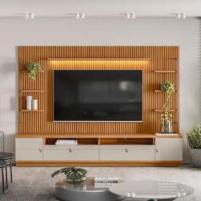 O Rack Para Sala com Painel Ripado Para TV 75 Pol 268cm Orizon L05 Nature Off White, da Lyam Decor, possui um design moderno e elegante que agregará estilo a sua sala de estar. O amplo rack oferece muito espaço de armazenamento para todos os seus dispositivos eletrônicos, enquanto o painel ripado adiciona um toque de sofisticação ao ambiente. Além disso, a iluminação LED integrada cria uma atmosfera acolhedora e contemporânea, ao passo a haste metálica sobreposta às prateleiras remete ao estilo industrial. Tenha uma sala de estar funcional e com muito charme com o Rack com Painel Ripado Orizon. Você vai se surpreender!