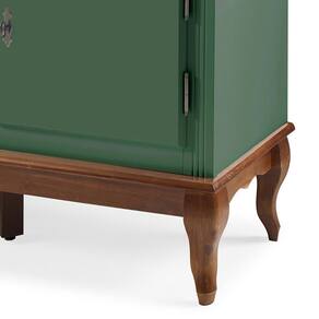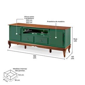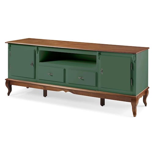 Rack para Sala com Pés Luis XV 2 Gavetas 2 Portas de Madeira e Nicho 60503M Linz Móveis - Verde Musgo/Imbuia Glazer