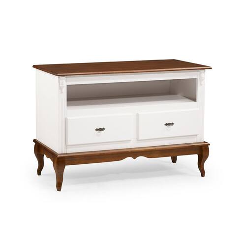 Rack para Sala com Pés Luis XV 2 Gavetas e Nicho 60502 Linz Móveis - Branco/Imbuia Glazer