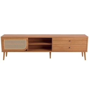 Fabricado 100% em MDF, esse rack bancada conta com uma porta de correr adornada por uma tela natural, que agrega um toque vintage que transforma o ambiente. Já as duas gavetas oferecem espaço generoso para manter tudo organizado, enquanto o tampo robusto serve perfeitamente para acomodar TVs de até 60 polegadas, unindo praticidade ao estilo. As linhas clássicas, combinadas com os pés estilizados, fazem deste rack retrô um verdadeiro ícone na decoração, ideal para quem valoriza um lar acolhedor e cheio de personalidade.