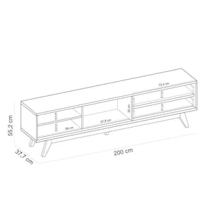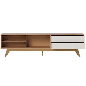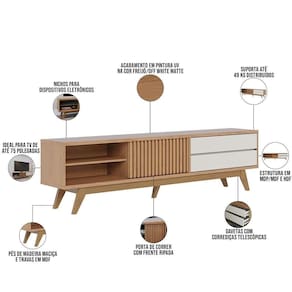 Dê um toque refinado e organizado na sua sala de estar com o Rack para Sala De Estar 75 Pol 200cm Pés Retrô Venice C04 Freijó Off White Matte, da Lyam Decor.