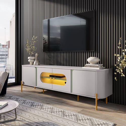 Apresentamos o Rack Juquehy, com dupla iluminação de LED, ele oferece uma experiência sofisticada ao iluminar seus espaços de forma suave e eficiente, destacando cada detalhe com estilo. Os vidros reflecta adicionam um toque moderno e refinado, combinando privacidade com uma estética marcante que transforma qualquer ambiente. Além disso, sua estrutura é pensada para durar: os pés em aço com pintura epóxi anti ferrugem garantem resistência contra o tempo e a umidade, mantendo o móvel impecável por muito mais tempo. O design orgânico, com linhas fluidas e harmoniosas, cria uma sensação de leveza e se adapta perfeitamente a diversos estilos de decoração. E, para completar, as dobradiças soft close proporcionam um fechamento silencioso e suave, garantindo conforto no uso diário. Produto Montado: Sim Acabamento: Pintura UV Acabamento da Porta: Pintura UV Acabamento da Prateleira: Pintura UV Acompanha Lâmpada: 01 Ambiente Principal: Sala de Estar codigo_ean: 7900288052933 Complexidade da Montagem: Alta: deve ser montado por um montador especializado Cor: Off-White/Pistache Cor do Produto: Off-White/Pistache Escala de Brilho: Semi-Brilho Escala de Brilho da Porta: Semi-Brilho Escala de Brilho da Prateleira: Semi-Brilho Espessura do Vidro: 3 mm Ideal para TVs até (Polegadas): 75 Itens Inclusos: 1 Rack + 1 Manual de Montagem Manual de Montagem e Instalação: https://product-hub-prd.madeiramadeira.com.br/975654/documents/13d56a03-a97b-46ef-9adf-b87993b0bbd72648794112717379803725316.pdf Marca: Móveis Bechara Material da Porta: MDF Material da Prateleira: MDP Material dos Pés: Aço Material Principal: MDP Necessita Montagem: Sim Peso: 31,2 kg Peso Máximo por Prateleira: 10 kg Possui Espelho: Não Possui iluminação: Sim Possui Pés: 06 Possui Vidro: Sim Recomendações de Uso, Manutenção e Limpeza: Recomenda-se limpar o produto com flanela ou pano macio seco, não utilizar produtos abrasivos, desengordurantes, álcool ou solvente. Mantê-lo em lugar livre de umidade e/ou exposição direta ao sol. Sapatas Niveladoras: Não Sistema de Montagem: Parafusos, Minifix, Cavilhas, Cola e Pregos Tipo de Porta: Bater Tipo de Puxador da Porta: Externo