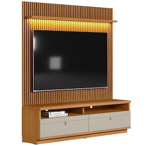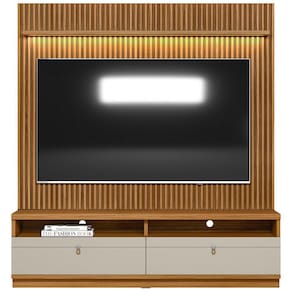 Suporta TV de até 75 polegadas no painel, 70 polegadas na bancada.