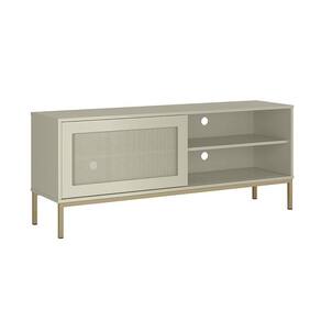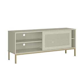 Rack Para Sala De Estar Tv 55 Polegadas Palha Buriti - Off White Acetinado - Cor: Off White