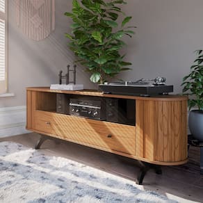 Seja para dispor como rack para TV de até 60 polegadas ou como item de apoio decorativo, é possível transformar sua sala de estar em um refúgio de estilo, conforto e criatividade. Afinal, o Rack Penina é uma peça que celebra a beleza do design natural e a praticidade do dia a dia, ideal para você que deseja um lar que conte uma história!