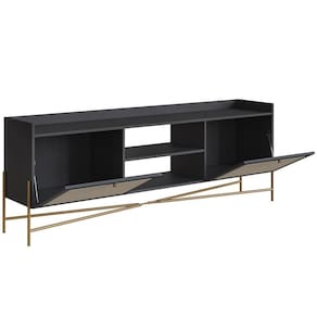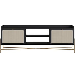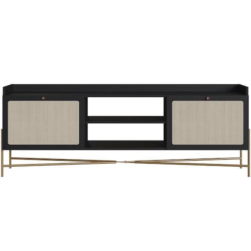 Rack Para Sala De Estar 65 Pol 183cm Industrial Indy A03 Nero Dourado - Lyam Decor