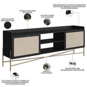 Monte a sala de estar dos sonhos com o Rack para Sala Indy, da Lyam Decor. Com design moderno e elegante, esse rack para não é apenas uma peça decorativa, mas também uma solução prática para organizar seu espaço e expor aparelhos de até 65 polegadas. Além disso, os pés metálicos estilo industrial garantem durabilidade e um toque rústico, enquanto o detalhe em tela sintética traz um charme artesanal que irá encantar a todos. Para completar, é o produto Ideal para acomodar seus eletrônicos e exibir suas decorações; afinal, esse rack 2 portas combina versatilidade e beleza, elevando a estética de qualquer ambiente. Aproveite cada momento em frente à com conforto e estilo! Dê vida nova à sua sala e garanta já o seu!