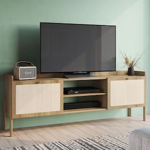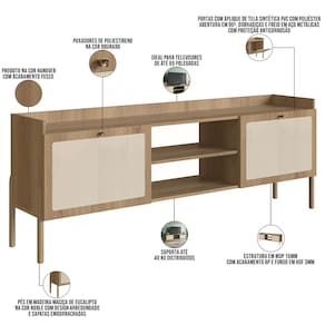 Conquiste a sala de estar dos sonhos com o Rack para Sala Moss, da Lyam Decor. Com design moderno e elegante, esse rack para TV não é apenas uma peça decorativa, mas também uma solução prática para organizar seu espaço e expor aparelhos de TV até 65 polegadas. Além disso, os pés em madeira maciça garantem durabilidade e um toque rústico, enquanto o detalhe em tela sintética traz um charme artesanal que irá encantar a todos. Para completar, é o produto Ideal para acomodar seus eletrônicos e exibir suas decorações; afinal, esse rack 2 portas combina versatilidade e beleza, elevando a estética de qualquer ambiente. Aproveite cada momento em frente à TV com conforto e estilo! Dê vida nova à sua sala e garanta já o seu!