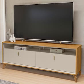 Imagine um rack que vai além do funcional - uma verdadeira obra de arte em sua sala. Com pés em madeira maciça chanfrada, o Rack Naomi 160cm não só organiza, mas transforma seu ambiente em um cenário de luxo e elegância.