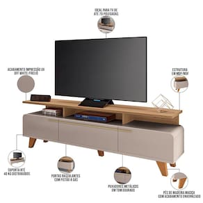 Seguindo a tendência do estilo orgânico, o Rack Para Sala de Estar TV 70 Pol 200cm Émile B01 Off White Freijó, da Lyam Decor, combina modernidade e sofisticação em uma única peça. Com cantos arredondados que adicionam charme ao ambiente, esse rack para Tv suporta aparelhos de até 70 polegadas. Além disso, as 3 portas basculantes com pistão de gás são ideais para armazenar diversos itens, deixando a bancada sempre livre e organizada. Já os nichos central e laterais são ótimos para dispor os demais equipamentos eletrônicos e objetos decorativos, tudo para deixar a sua casa com a sua personalidade.