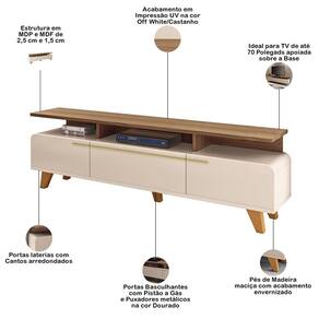 Altura: 61 cm | Color: Off White Castanho | ColorFamily: Off White | ColorSimple: Off White | ColorSupplier: Off White Castanho | Com compartimento para alto-falantes: Não | Com rodas: Não | Cor: Off White Castanho | Formato do móvel: Rack | Largura: 200 cm | Materiais do corpo: MDP, MDF | Material: MDP, MDF | Material da estrutura: MDP, MDF | Material das corrediças: na | MaterialFamily: MDP, MDF | Model: Émile | OriginCountry: Brasil | OriginState: PR | Peso: 45 kg | ProductContents: 01 Rack | ProductHeight: 200 cm | ProductInstructions: Produto para uso em ambiente interno, nao devendo ficar exposto ao sol, calor e umidade excessivos. | ProductLength: 38 cm | ProductWarranty: 90 dias após o recebimento do produto | ProductWeight: 45 kg | ProductWidth: 61 cm | Profundidade: 38 cm | Quantidade de portas: 3 | Requer montagem: Sim | SizeDescription: Altura: 200 cm x Largura: 61 cm x Profundidade: 38 cm | SupplierSimpleName: Rack Para Sala de Estar TV 70 Pol Orgânico 200cm Émile B01 Off White Castanho - Lyam Decor | Tamanho máximo de TV: 70 Pol
