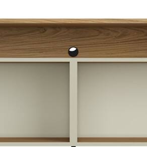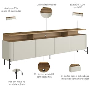 Com pés metálicos no estilo industrial e cantos arredondados que suavizam o ambiente, esse rack industrial móvel é a fusão perfeita entre força e sofisticação. O tampo flutuante cria a sensação de que sua TV 75 polegadas está suspensa, enquanto os nichos estratégicos organizam todos os aparelhos com ventilação ideal. Os espaços internos amplos, discretamente escondidos atrás das portas, são convites para organizar desde coleções até aqueles itens do dia a dia que você quer manter por perto, mas longe da vista.