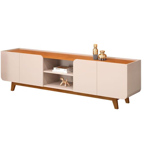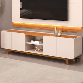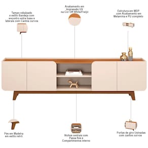O Rack Para Sala de Estar TV 75 Pol Cine D05 Off White Freijó, da Lyam Decor, combina funcionalidade e estilo em um só lugar. Com um tampo rebaixado que cria o efeito de bandeja e cantos curvos modernos, esse rack bancada traz o melhor do design contemporâneo para sua sala. Por sua vez, a funcionalidade fica por conta das quatro portas, já que garantem um amplo espaço interno para armazenar seus objetos. Além disso, os dois nichos e a prateleira entre as portas foram projetados intencionalmente para dispor os demais aparelhos eletrônicos ou até mesmo itens decorativos. Para completar, você ainda pode dispor de TVs de até 75 polegadas sobre o tampo e, assim, deixar o ambiente ainda mais imponente. Aproveite momentos de entretenimento com muito estilo com o Rack Cine. Garanta já o seu!