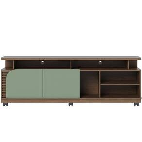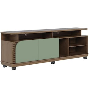 Transforme o seu ambiente com estilo e funcionalidade com o Rack para Sala De Estar 75 Pol com Rodízios Laguna C04 Amêndoa Hortelã, da Lyam Decor.