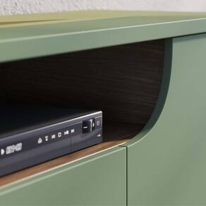 Com um tampo robusto de 25 mm, esse rack bancada une resistência e elegância em um design moderno. As quatro portas de giro, sendo duas com um detalhe curvo, conferem sofisticação ao móvel, criando um visual arrojado e contemporâneo. Já os puxadores em alumínio dourado fosco acrescentam um toque de luxo, elevando ainda mais a estética do seu espaço. Para completar, o Rack Gianna é a escolha ideal para quem busca um equilíbrio perfeito entre funcionalidade e beleza, permitindo que você organize seus objetos de maneira prática e estilosa, graças às quatro portas com amplos compartimentos. Ah, e você pode apoiar sua de até 75 polegadas sobre o tampo, aproveitando o máximo de funcionalidade.