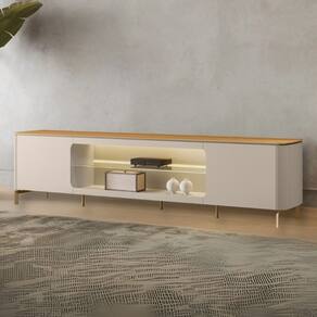 Conheça o Rack Para Sala de Estar Elysia com LED, da Lyam Decor, uma peça que combina modernidade e funcionalidade de forma única. Com um design que remete ao estilo orgânico, seus detalhes curvos canelados oferecem um toque de sofisticação, enquanto suporta TVs de até 85 polegadas.