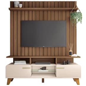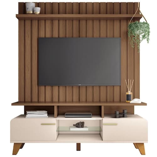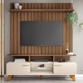 Esse conjunto de rack com painel é a definição perfeita de elegância e praticidade, projetado para aqueles que valorizam um ambiente moderno e acolhedor. O painel ripado é um verdadeiro destaque, trazendo textura e profundidade à decoração. Suas ripas verticais criam um efeito visual dinâmico, enquanto a prateleira superior proporciona um espaço ideal para exibir itens decorativos, como plantas ou livros. Já o rack, com suas linhas curvas, remete ao estilo orgânico, conferindo um toque suave e fluido ao ambiente.