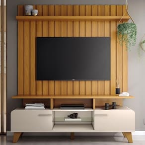 Esse conjunto de rack com painel é a definição perfeita de elegância e praticidade, projetado para aqueles que valorizam um ambiente moderno e acolhedor. O painel ripado é um verdadeiro destaque, trazendo textura e profundidade à decoração. Suas ripas verticais criam um efeito visual dinâmico, enquanto a prateleira superior proporciona um espaço ideal para exibir itens decorativos, como plantas ou livros. Já o rack, com suas linhas curvas, remete ao estilo orgânico, conferindo um toque suave e fluido ao ambiente.