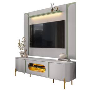 Rack Para Sala Orgânico Suy Com Painel Para 75 Pol Maresca B02 Off White Pistache - Lyam Decor