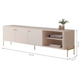 ALTURA DO PRODUTO (CM): 54,5 | ALTURA DO PRODUTO COM EMBALAGEM (CM): 43 | COMPRIMENTO DO PRODUTO (CM): 42 | COMPRIMENTO PRODUTO COM EMBALAGEM (CM): 75 | CONTEÚDO DA EMBALAGEM: 1 Bancada | DESCRIÇÃO DO TAMANHO: 54,5x183x42 | ESTADO DE ORIGEM: SP | FORMATO DO MÓVEL: Rack | INSTRUÇÕES/CUIDADOS: Limpar com flanela ou pano macio seco, não utilizar produtos abrasivos, desengordurantes, álcool ou solvente. Não expor o produto diretamente à luz solar e à umidade | LARGURA DO PRODUTO (CM): 183 | LARGURA PRODUTO COM EMBALAGEM (CM): 182,5 | MARCA: Casa H | MATERIAL PARA FILTRO: MDF | MATERIAL PRINCIPAL: MDF | PARA TVS DE ATÉ:: 70 polegadas | PESO DO PRODUTO (KG): 29,7 | PRODUTO PRECISA DE MONTAGEM?: Sim, a montagem é facil mas sugerimos a contratação de um montador para a montagem do produto. Não nos responsabilizamos por danos causados no ato da montagem. | QUANTIDADE DE PORTAS: 3 | QUANTIDADES DE CAIXAS DE EMBALAGEM: 1 | TAMANHO: 70 polegadas | Requer montagem: Sim | País de Origem: | Montagem: Necessita Montagem Cor: Off White Dourado