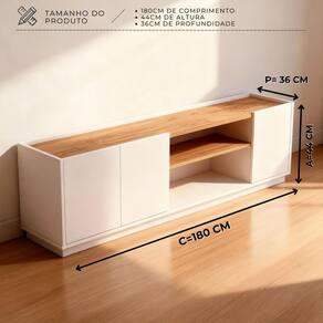 Rack Moscou 180cm com base em rodapé, ideal para salas amplas e ambientes de home cinema. Possui design moderno e estrutura resistente, oferecendo amplo espaço para organizar eletrônicos, consoles e objetos decorativos. O rodapé garante maior estabilidade e acabamento sofisticado.