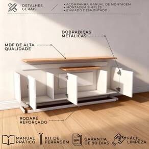 Produto enviado desmontado, acompanha manual de montagem e kit de ferragens. Produto Montado: Sim Acabamento: BP Acabamento da Porta: BP Acabamento da Prateleira: BP Ambiente Principal: Sala de Estar codigo_ean: 7900288349545 Complexidade da Montagem: Média: pode ser montado por mais de uma pessoa e/ou necessite de maior conhecimento para montagem Cor: Branco/Naturale Cor do Produto: Branco/Naturale Escala de Brilho: Fosco Escala de Brilho da Porta: Fosco Escala de Brilho da Prateleira: Fosco Espessura do Tampo: 12 mm Ideal para TVs até (Polegadas): 75 Itens Inclusos: 1 Rack, Manual de Montagem e Kit Ferragens Linha ou Coleção: Moscou Marca: BYHOUSE Material da Porta: MDF/MDP Material da Prateleira: MDF/MDP Material dos Pés: MDF Material Principal: MDF/MDP Necessita Montagem: Sim Peso: 24,2 kg Peso Máximo por Prateleira: 5 kg Possui Adega: Não Possui Espelho: Não Possui iluminação: Não Possui Passa Cabos: Sim Possui Pés: Rodapé Possui Portas: Sim Possui Prateleiras: Sim Possui Vidro: Não Recomendações de Uso, Manutenção e Limpeza: Pano limpo e água Sapatas Niveladoras: Não Sistema de Montagem: Parafusos e cavilhas Tipo de Porta: Abrir Tipo de Puxador da Porta: Embutido Marca: Não Informado