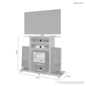 Dimensões Rack Altura: 75 cm Largura: 91 cm Profundidade: 36 cm