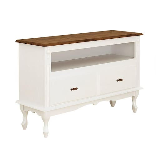 Rack Para Tv 45 Polegadas 2 Gavetas Nicho E Pés Luiz Xv - Branco Laca Com Tampo Imbuia Glazer