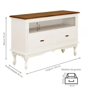 Rack Para 45 Polegadas 2 Gavetas Nicho E Pés Luiz Xv - Branco Laca Com Tampo Imbuia Glazer
