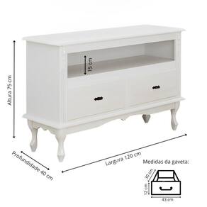 O Rack Luiz XV 2 Gavetas é uma peça de encher os seus olhos e a sua sala. Com pés em estilo Luiz XV, os detalhes é que fazem toda a diferença. Com frisos na parte frontal e pequenas gravatinhas torneadas, elas trazem todo aquele ar retrô que sempre buscamos nos produtos. A prateleira é sem repartição, assim você tem muito mais espaço para guardar e organizar as suas coisas e ainda pode guardar aquelas coisinhas que nem sempre queremos mostrar, dentro de suas 2 gavetas. Embaixo do móvel há um detalhe que faz toda diferença, são detalhes de acabamento desenhados (torneados) que dão um arremate final a peça todo especial.