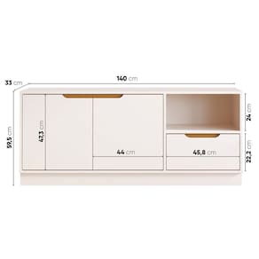 Bancada exclusiva da linha modular, portas com os puxadores usinado e dobradiças slow (com amortecedor). Estrutura em 1,5cm, 100% MDF. Medidas (LxAxP) :140cm x 59,5cm x 33cm.