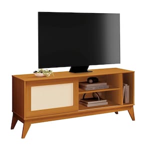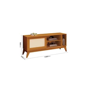 Design limpo e funcional que valoriza qualquer ambiente. Possui tampo em MDF com borda laqueada de alta resistência, porta deslizante para melhor aproveitamento do espaço e estrutura em MDP robusta. Ideal para TVs de até 55 polegadas, combina praticidade e estilo. Dimensões: 58cm de altura, 136cm de largura e 37cm de profundidade. Peso total de 21,4kg Produto Montado: Sim Acabamento: Pintura UV Acabamento da Porta: Pintura UV Acabamento da Prateleira: Pintura UV Ambiente Principal: Sala de Estar codigo_ean: 7900288201911 Complexidade da Montagem: Média: pode ser montado por mais de uma pessoa e/ou necessite de maior conhecimento para montagem Cor: Cedro Cor do Produto: Cedro Cor Interna: Cedro Escala de Brilho: Fosco Escala de Brilho da Porta: Fosco Escala de Brilho da Prateleira: Fosco Espessura do Tampo: 12 mm Ideal para TVs até (Polegadas): 55 Itens Inclusos: 1 Rack, Kit Ferragens e Manual de Montagem Linha ou Coleção: Cayman Manual de Montagem e Instalação: https://product-hub-prd.madeiramadeira.com.br/680575266/documents/71a266af-16e9-4454-b174-b643b8d956a83097210610717534443295348.pdf Marca: EDN Móveis Material da Porta: MDF Material da Prateleira: MDP Material dos Pés: MDF Material Principal: MDF Necessita Montagem: Sim Origem do Produto: Nacional Peso: 21,4 kg Peso Máximo por Prateleira: 5 kg Possui Adega: Não Possui Espelho: Não Possui iluminação: Não Possui Passa Cabos: Sim Possui Pés: 04 Possui Prateleiras: Sim Possui Vidro: Não Quantidade de Nichos: 03 Recomendações de Uso, Manutenção e Limpeza: Limpar com pano macio e levemente umedecido com água. Evitar produtos abrasivos, álcool, solventes ou esponjas ásperas. Secar imediatamente após a limpeza. Sapatas Niveladoras: Sim Sistema de Montagem: Parafusos, cavilhas e minifix Tipo de Porta: Correr Tipo de Puxador da Porta: Embutido